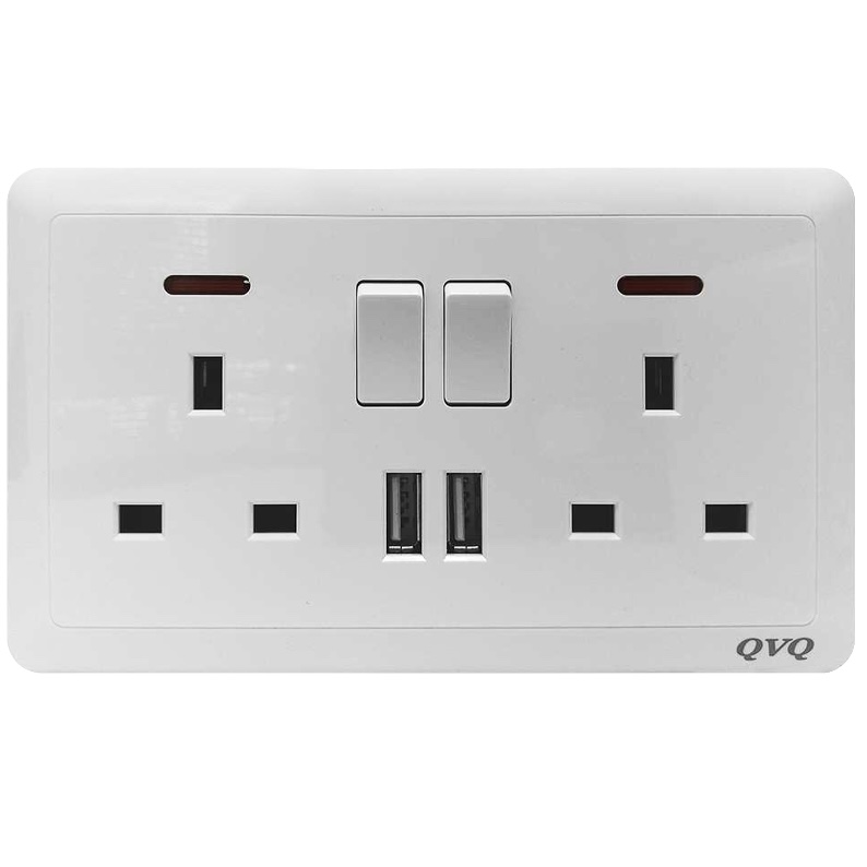 QVQ Double English Socket with Switch, Indicator Lamp & Charger