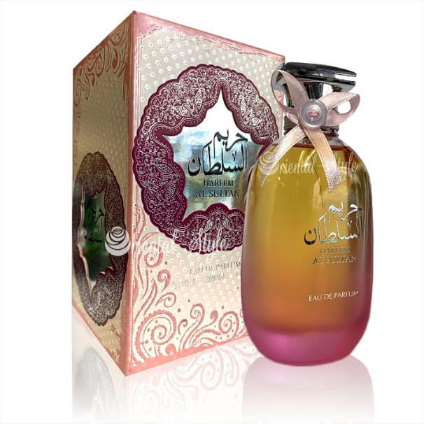 عطر «حريم السلطان» أو دو بارفان بحجم 100 مل بتصميم زجاجة وعلبة أنيقين.
