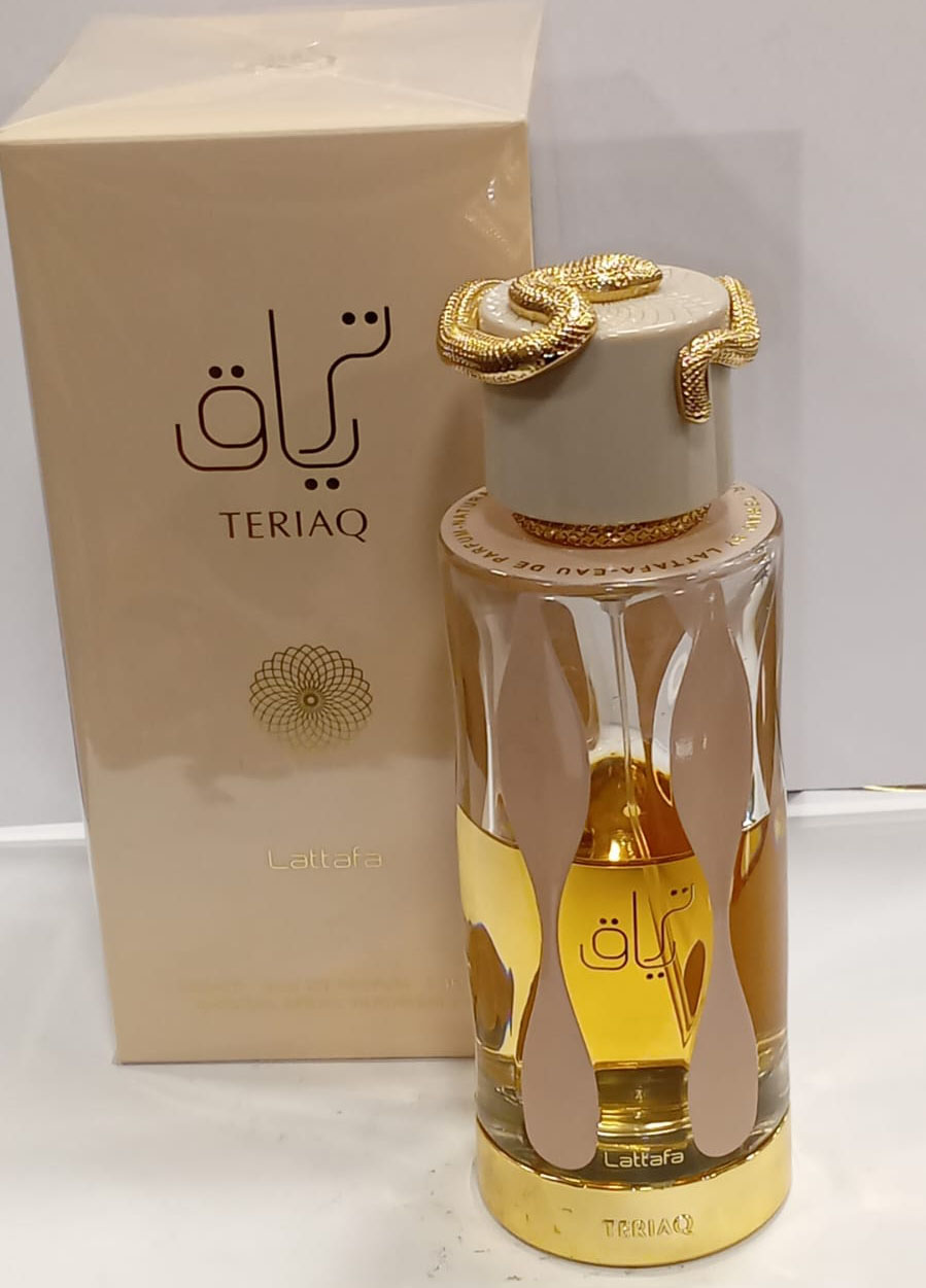 عطر «ترياق» أو دو بارفان بحجم 100 مل بتصميم زجاجة وعلبة أنيقين.