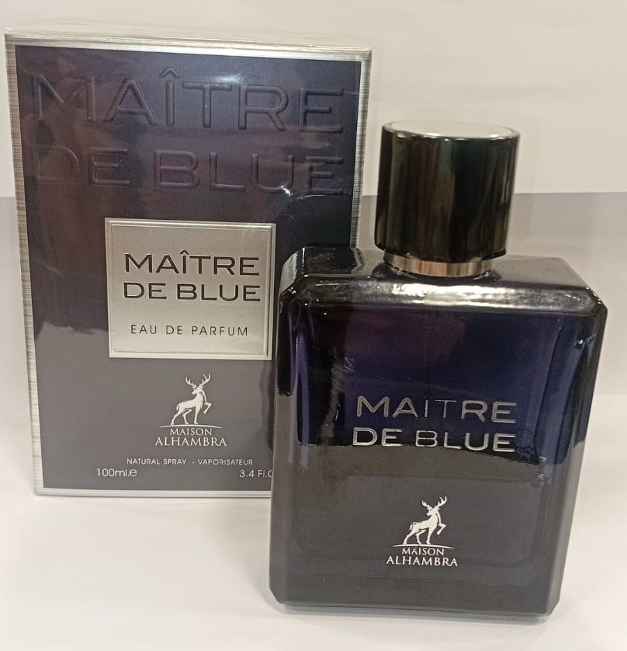 عطر «مايتر دو بلو» أو دو بارفان بحجم 100 مل بتصميم زجاجة وعلبة أنيقين.